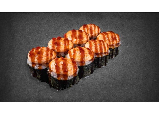 Состав: лосось, томат, икра летучей рыбы, соус яки, соус унаги