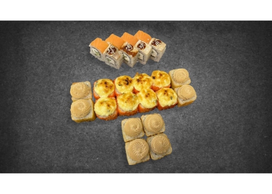 "Тори Маки" "Фила Лайт" "Томаго Ролл" "Запечённая Креветка" "Кани Жареный"