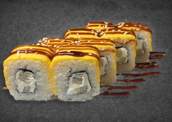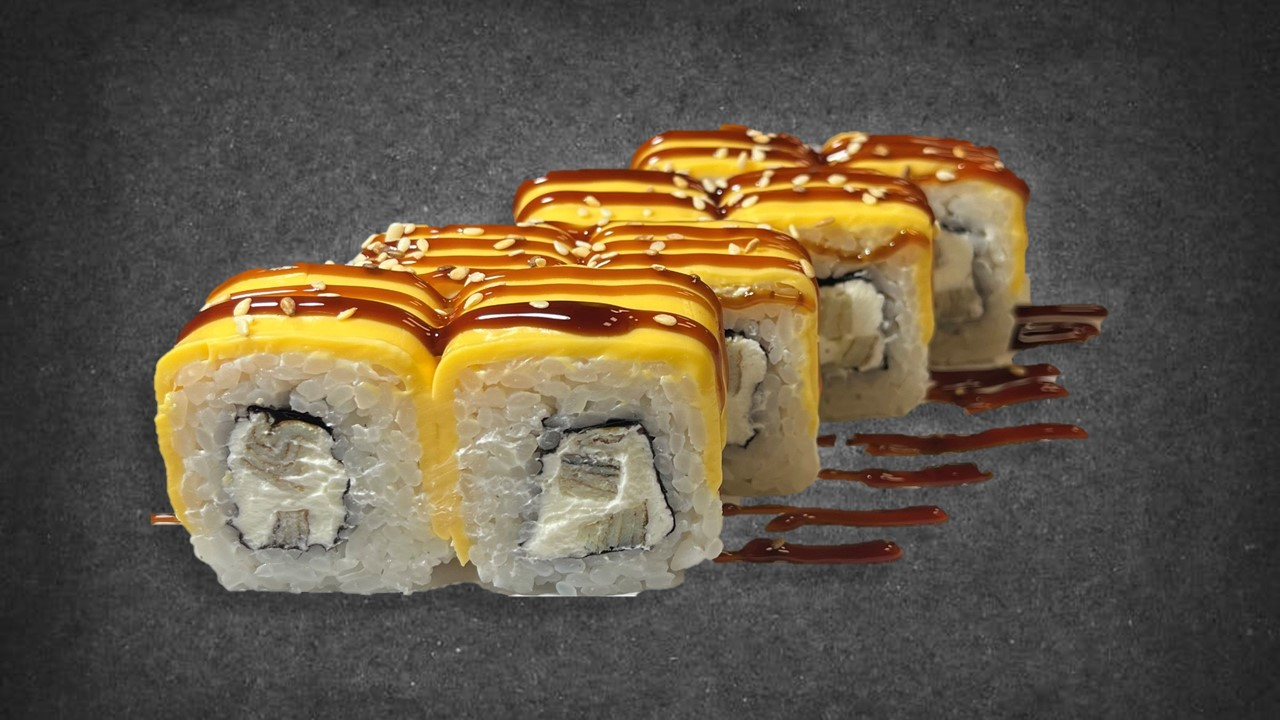 Состав: сливочный сыр, томаго, сыр чеддер, унаги соус.