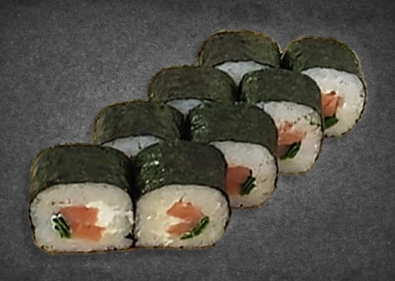 Состав: сыр сливочный, лосось, лук зеленый, соус унаги, кунжут