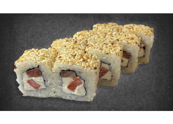 Состав: филе тунца, сыр сливочный, лук зеленый, соус терияки, кунжут.