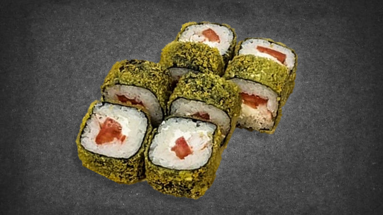 Состав: сливочный сыр, мидии спайс, огурец, сухари панко, соус унаги, кунжут.