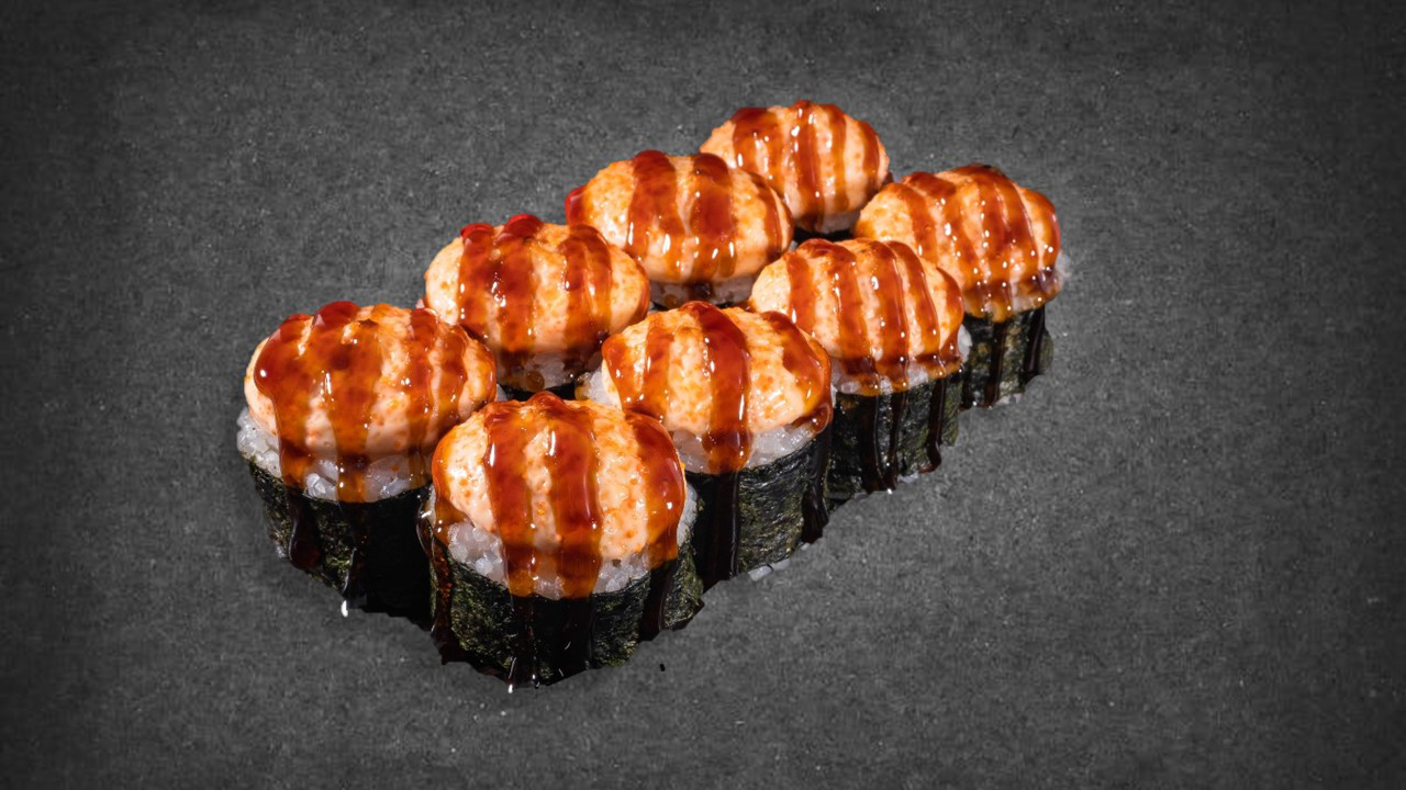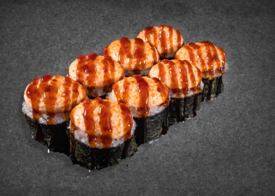 Состав: лосось, томат, икра летучей рыбы, соус яки, соус унаги